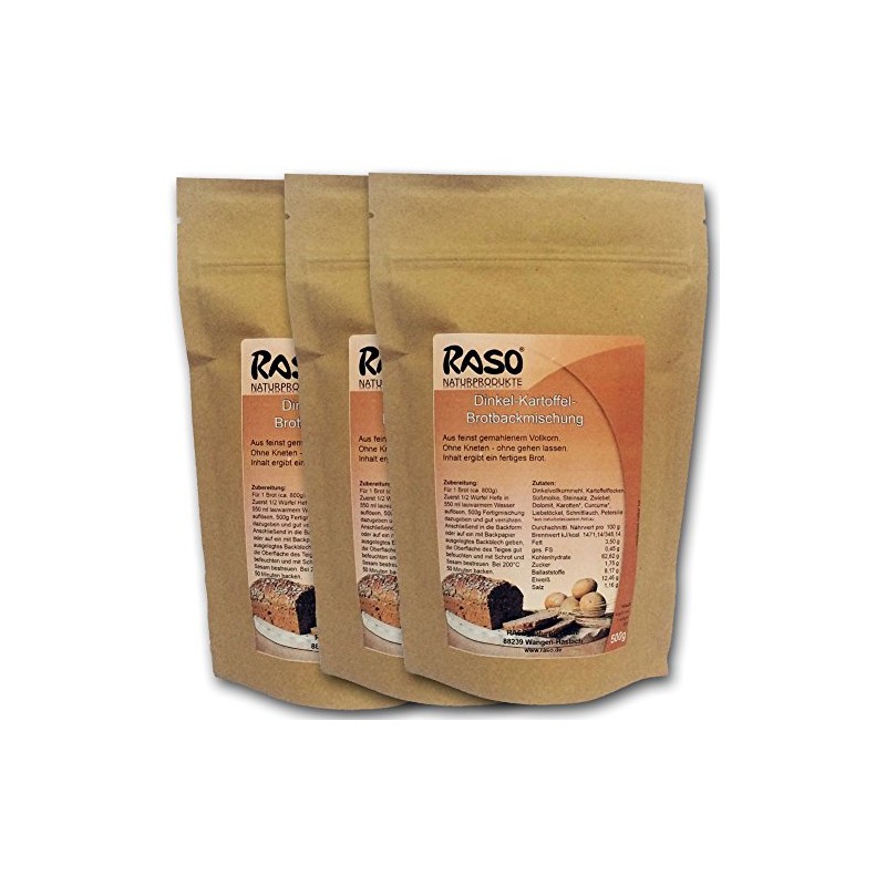 • ✓ Bread baking mixture - you only add crumbled yeast and some water to the Raso spelt potato baking mix. The preparation is very easy and requires no effort.