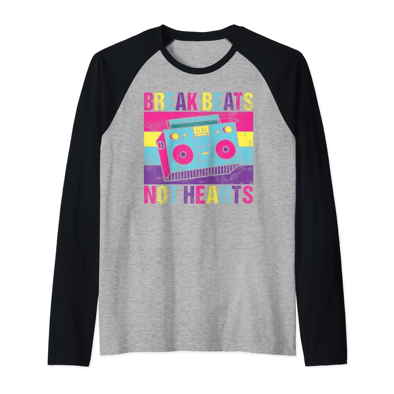 Break Beats Not Hearts 90s Hip Hop Raglan Baseball Tee