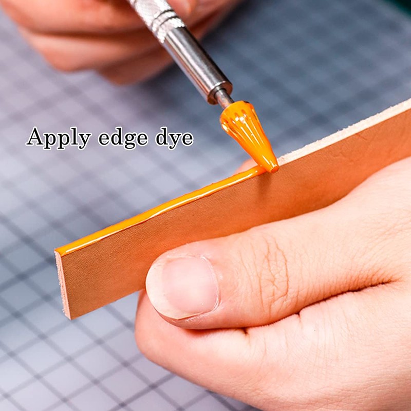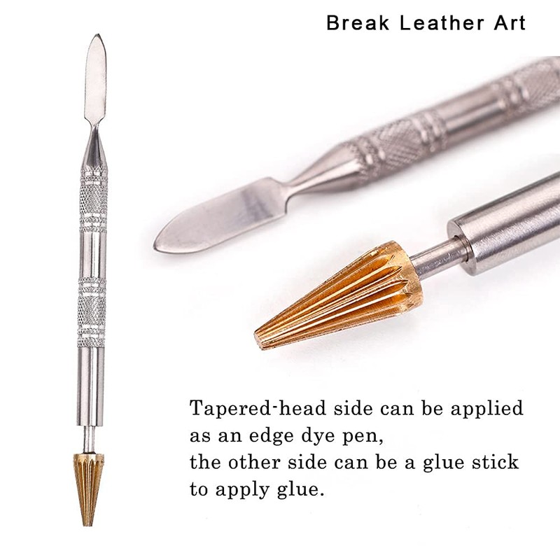 - 2 Functional: leather edge dye pen is a multifunctional leather tool, tapered-head/round-head side can be applied as an edge dye pen, he other side can be a glue stick to apply glue. Convenient leather edge printing supplies, improves your efficiency of leather work