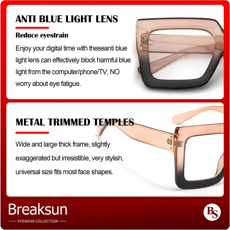 - Lentes de bloqueo de luz azul: las anteojos de visualización grande Breaksun pueden bloquear eficazmente la luz azul dañina de la computadora/teléfono/TV, evitar la luz dañina directamente en los ojos, proteger tu vista de ser afectada, te hacen completar el trabajo de manera eficiente y fácil.
