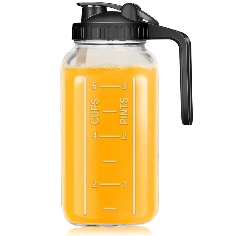 - 【Safety Glass Pitcher 】Heavy Duty Glass Mason Jar Pitcher is made of food grade lead free, thick, high-quality sodium calcium glass, sturdy enough for long-lasting use. Wide mouth makes it easy to clean. The glass pitcher suit for hot and cold beverages will be a great choice for daily beverage routine and storage.