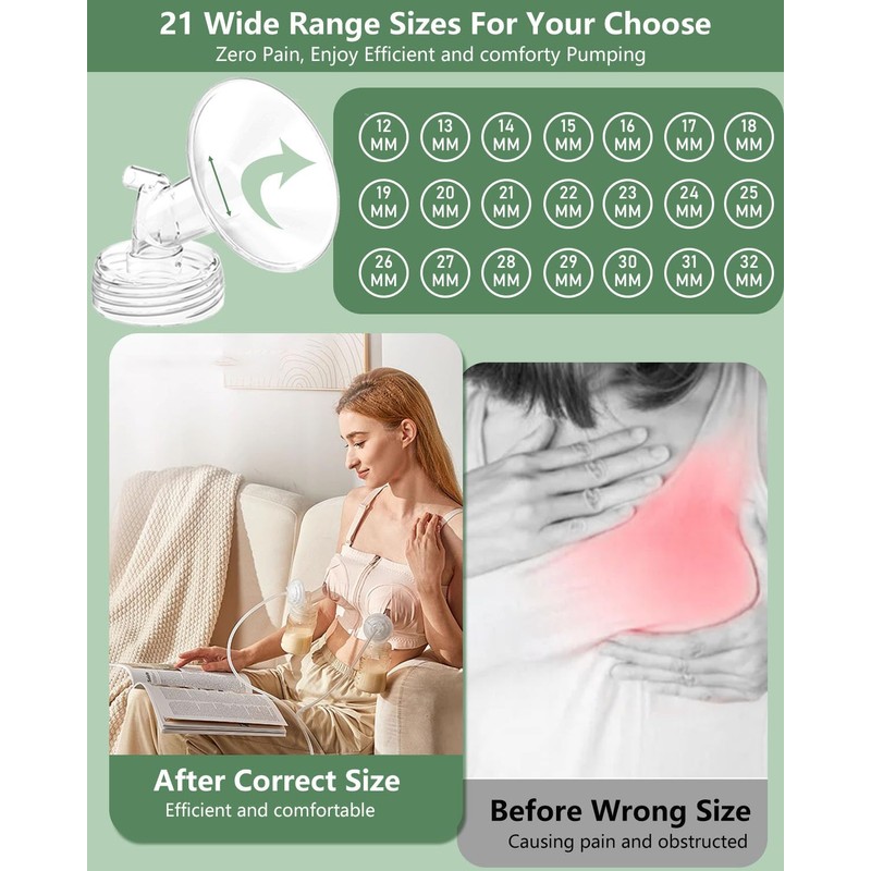 • 【Multiple Flange Sizes, Improving Efficiency】:The upgraded flange is wide-neck design,smooth angle and long tunnel, creating better fit and promoting effective during pumping. And a variety of sizes are available: 12mm, 13mm, 14mm, 15mm, 16mm, 17mm, 18mm, 19mm, 20mm, 21mm, 22mm, 23mm, 24mm, 25mm, 26mm, 27mm, 28mm , 29mm, 30mm, 31mm, 32mm.