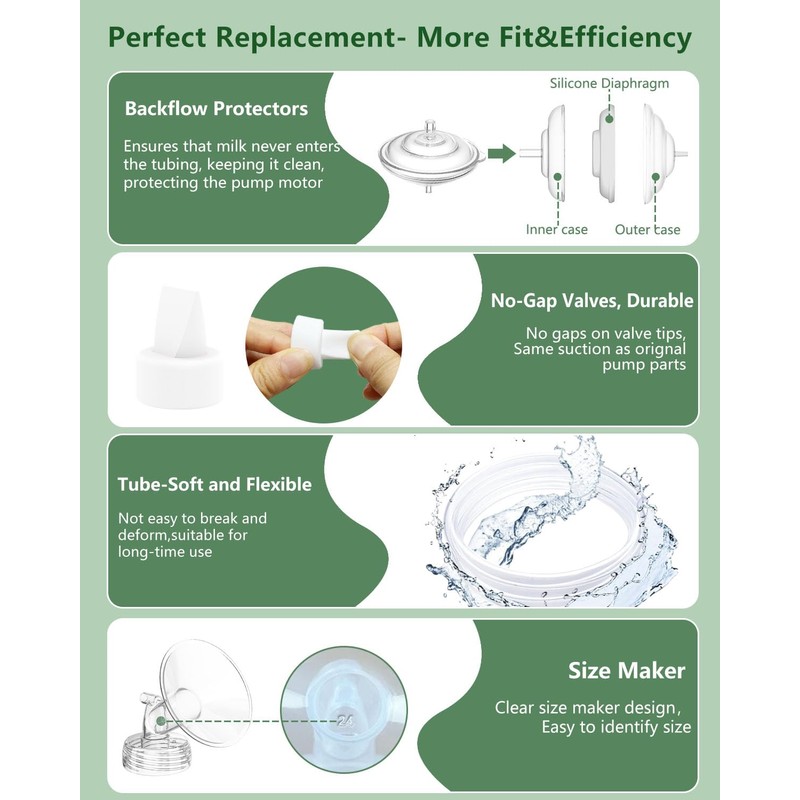 • 【Breast Pump Part Kits Content】:2*24mm Flanges, 4*Duckbill Valves(2*Extra Valve), 2*Backflow Protectors, 2*Tubes, 2*Bottles (with screw rings and sealing disc), 1 Gift Box. Note: These are Not Original Spectra Accessories.