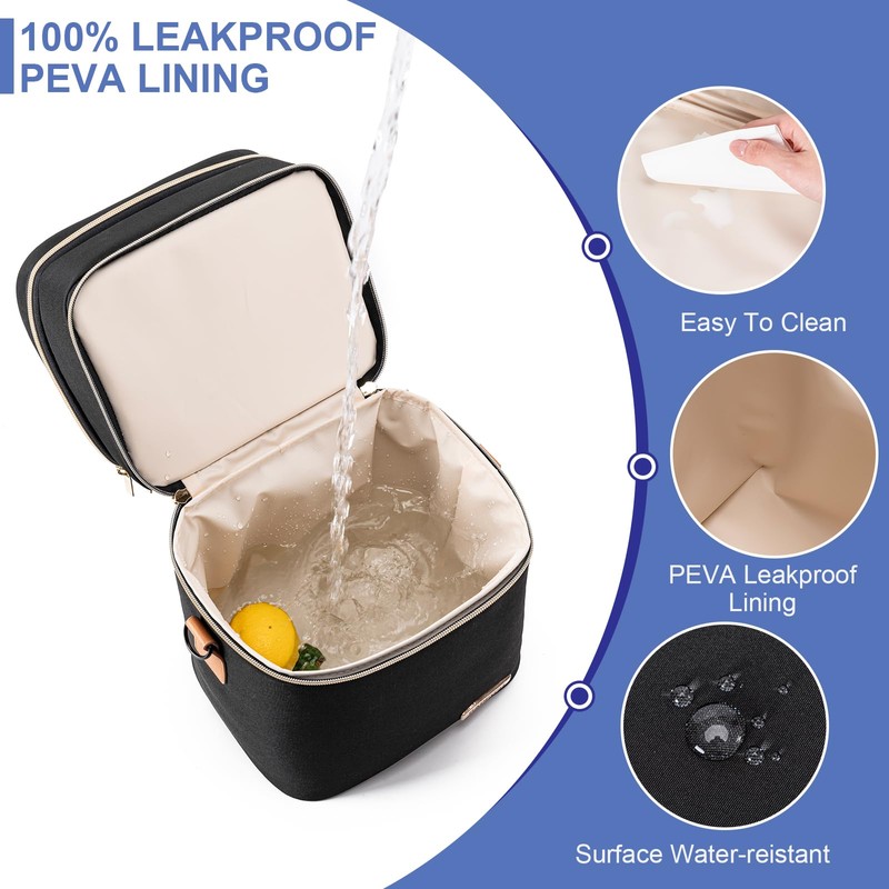 BABEYER Breastmilk Cooler Bag with Ice Pack Fits 6 Baby Bottles Up to 9 Ounce, Double Deck Leak-Proof Baby Bottles Bag with Shoulder Strap for Nursing & Working Mom, Black