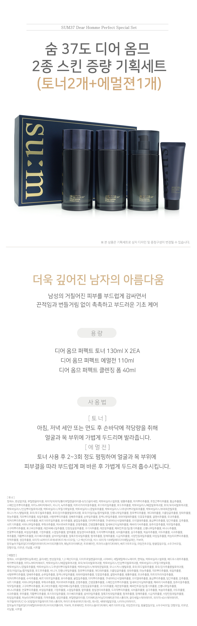 숨 37도 디어 옴므 2종 스킨 증량 기획세트(토너2개+에멀젼1개)