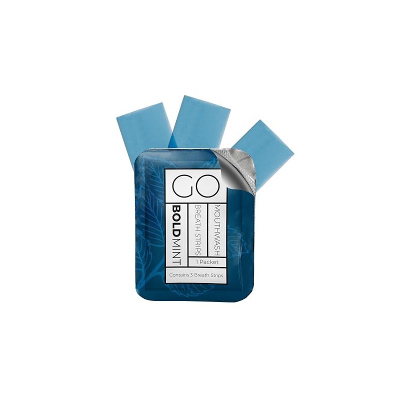 Breath Strips for Bad Breath by Go Mouthwash- Indivivual Packets containing 3 Bold Mint Strips - Alternative to Breath Mints, Travel Mouthwash, Breath Spray, and Other Fresheners - Perfect on The GO