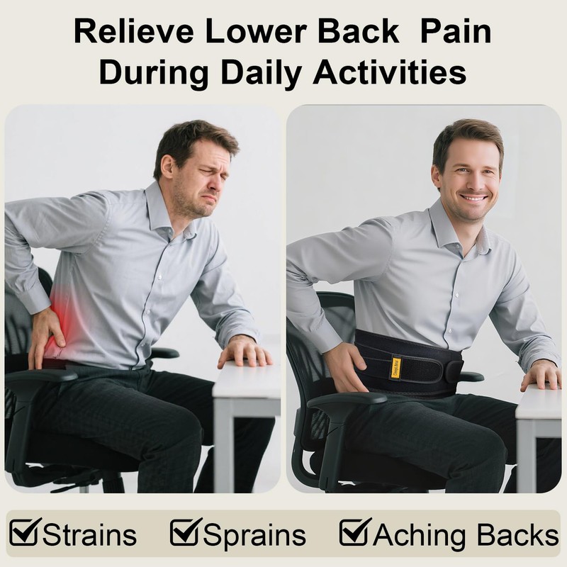 - [Lower Back Pain Relief] Say goodbye to nagging lower back pain! The supportive stays of our back brace provides effective support to relieve pain and discomfort caused by herniated discs, sciatica, scoliosis, and more.