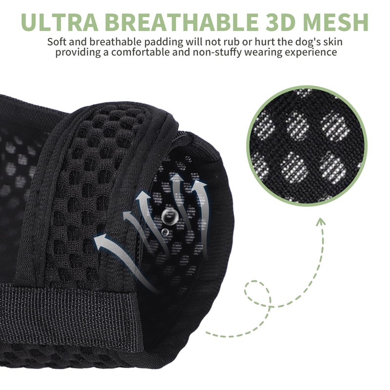 - 【BREATHABLE MATERIAL】This dog muzzle is made of high-density breathable mesh material, which is soft and light. The muzzle contacts the skin with a soft pad, which will not rub or hurt the dog's skin, can reduce discomfort when wearing, and give the dog gentle protection.