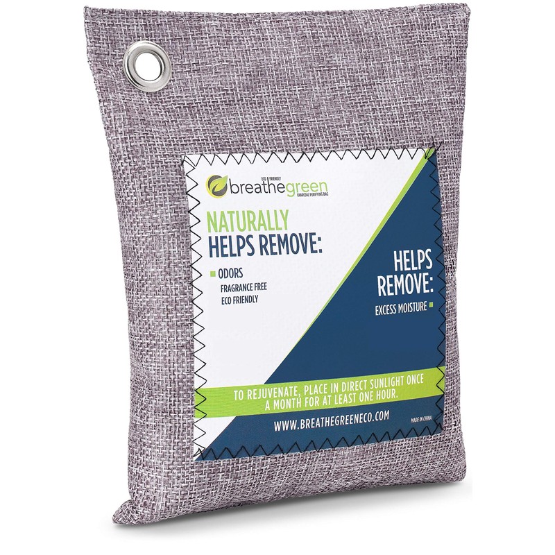 Breathe Green Bamboo Charcoal Odor Eliminator Bag, Activated Charcoal Odor Absorber, Natural Freshener Removes Odors and Moisture, Odor Eliminator for Home, Pets, Car, Closet, Basement, RV…