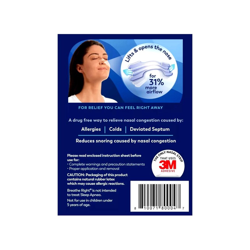 Breathe easy again with Breathe Right Clear Nasal Strips for Sensitive Skin (Small/Medium): This original nasal strip was made clear for sensitive skin. Easier on the nose and almost unnoticeable to the eye. Feature a hypoallergenic, flexible, and non?porous material that makes them easier to remove.