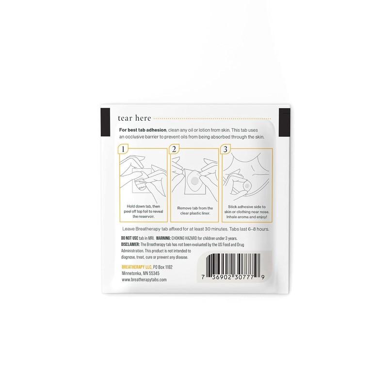 - INHALATION TECHNOLOGY: Receive a soothing aromatherapy experience through inhalation only technology. Leave tab affixed for at least 20 minutes and up to 8 hours. Breatherapy tabs will last 6-8 hours, so you can receive the benefits throughout your entire day.