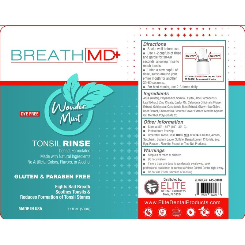 BreathMD - Natural Tonsil Stone Remover Rinse Mouthwash & Bad Breath Treatment - Dentist Formulated - Alcohol Free, Dye Free, Gluten Free - Wonder Mint Flavor - Made in USA
