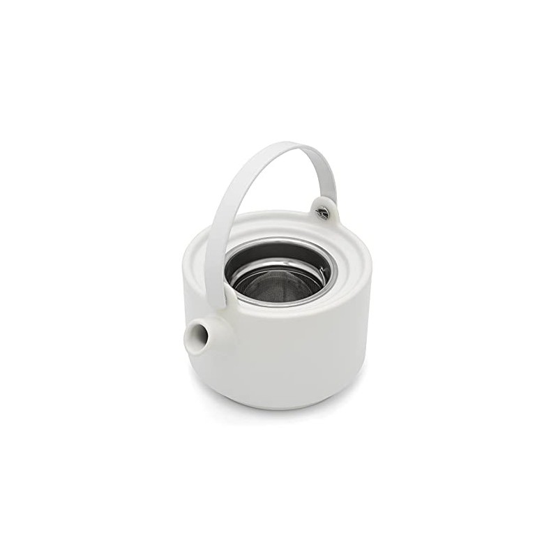 - The white handle and button of the earthenware teapot with stainless steel sieve are only warm to the touch