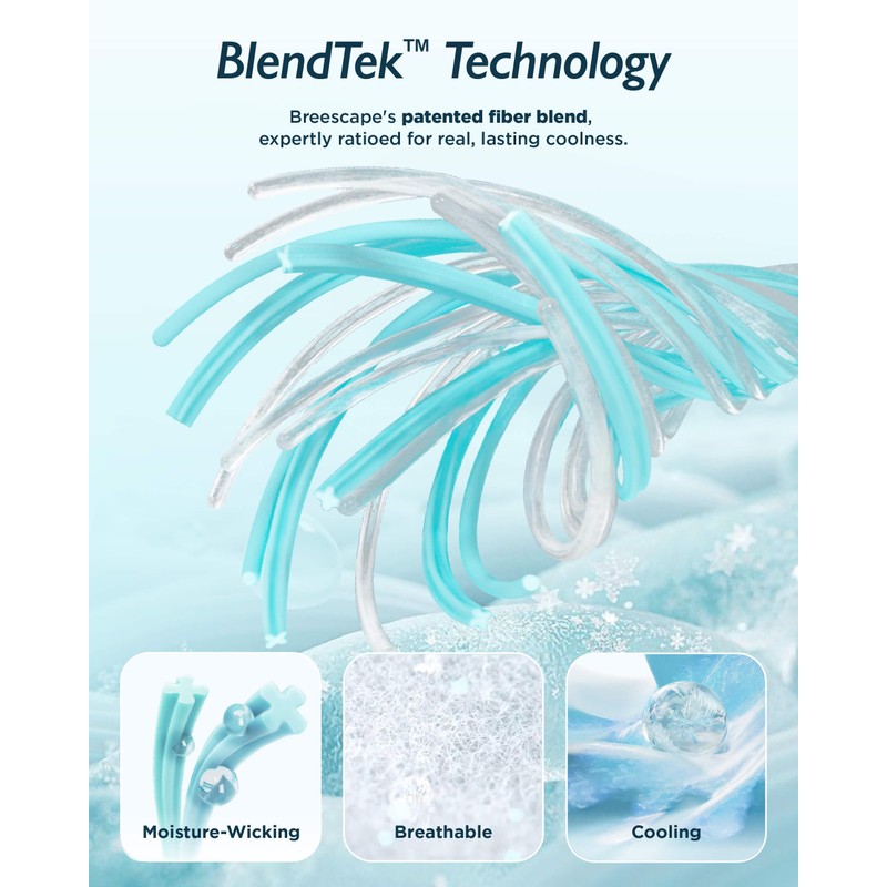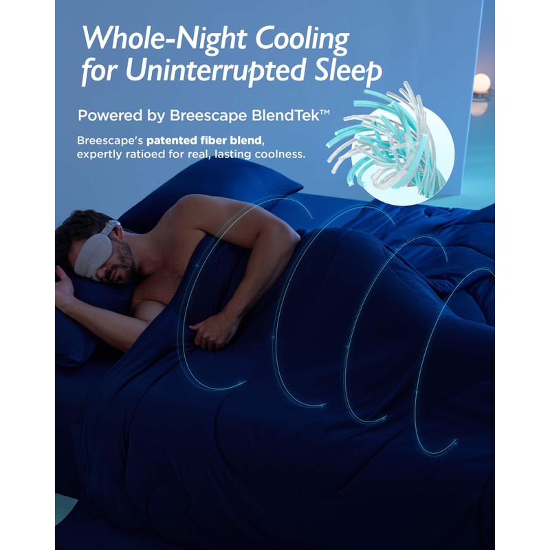 • Whole-Night Cooling: Start experiencing breezier nights with our Breescape Cooling Comforter. Crafted with our innovative BlendTek fiber, it’s 3.1x cooler than bamboo rayon, 4.5x more breathable than cotton, and 1.5x more moisture-absorbent. Plus, with a Qmax value of 0.46, it ensures you're sleeping on fabric that's instantly cool to the touch and stays that way all night.
