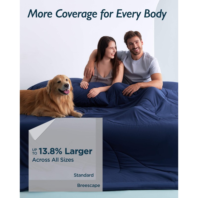 • More Coverage for Every Body: This comforter offers up to 13.8% more coverage across all sizes, draping nicely to gently hug your body for all-around comfort. Whether you run hot or just want a cooling blanket that truly fits, Breescape is made for you. Tested and loved by over 1,000 hot sleepers before launch, say goodbye to clammy nights and hello to uninterrupted, refreshing sleep.
