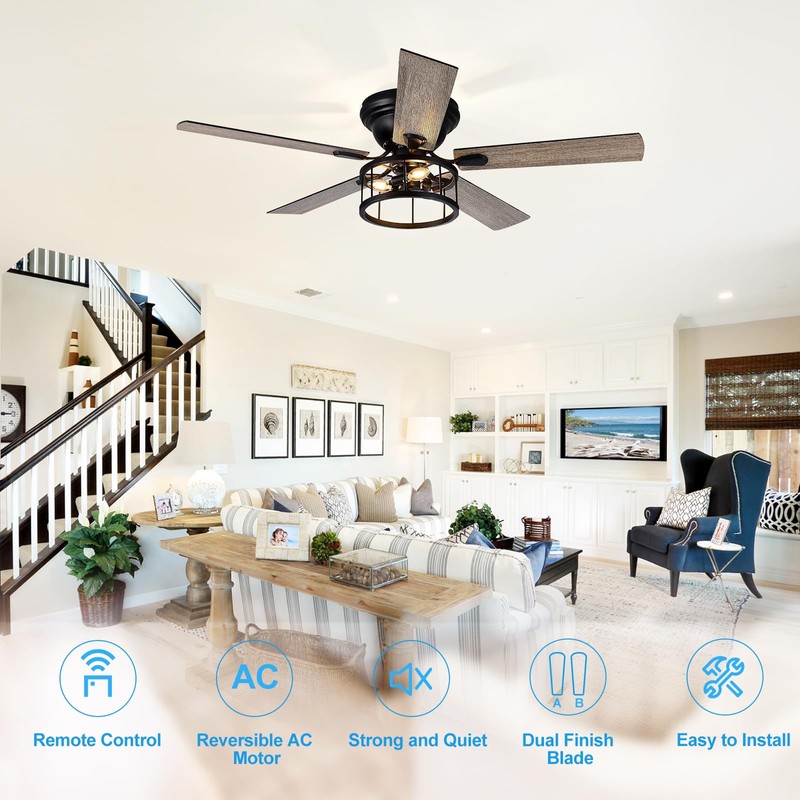 • 5 Reversible Blade & Quiet AC Motor:With super silent AC motor, this farmhouse ceiling fans with light runs smoothly with no noise and deliver strong airflow. 5 reversible blades provide downward wind to keep your room cool in summer, while in winter, you can change it to upward to enhance the airflow and keep your room warm.
