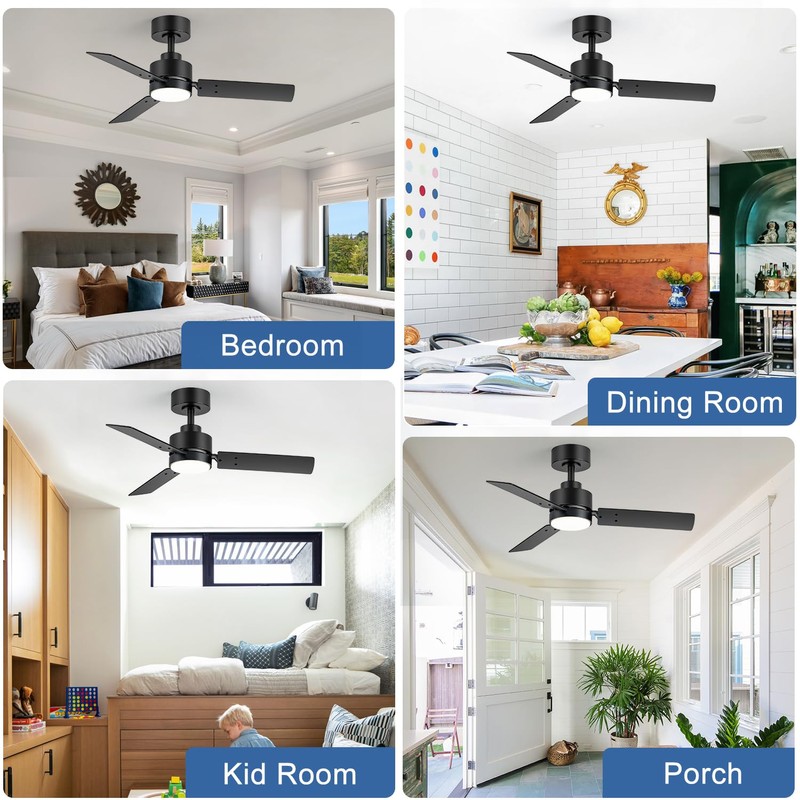- 36-Inch Ceiling Fan with Light: The Breezary 36-inch ceiling fan features a low-profile design, perfect for rooms with low ceilings. Its compact size ensures optimal airflow in spaces from 10ft x 10ft to 12ft x 12ft, ideal for bedrooms, kitchens, living rooms, dining rooms, and home offices