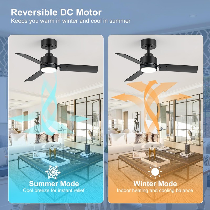 - Energy-Efficient Reversible DC Motor: This small black ceiling fan features an energy-efficient DC motor operating at 120V/60Hz. The reversible motor provides cooling in summer and warm air circulation in winter. With 6 adjustable speeds, choose from comfortable, natural, or strong wind. It saves up to 80% in energy consumption compared to traditional motors