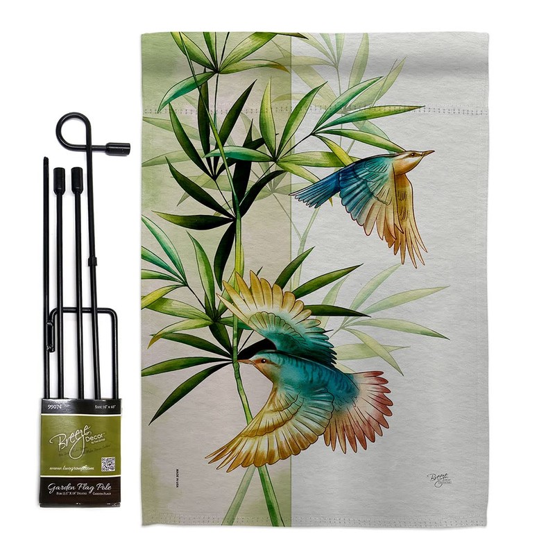 Breeze Decor Asian Blossom Birds Garden Flag Set with Stand Animals Bird Flamingo Hummingbird Cardinal Peacock Springtime Natural Wildlife Small Gift Yard House Banner Made in USA 13 X 18.5