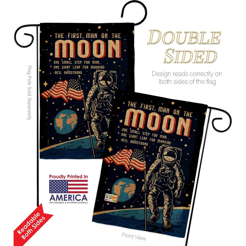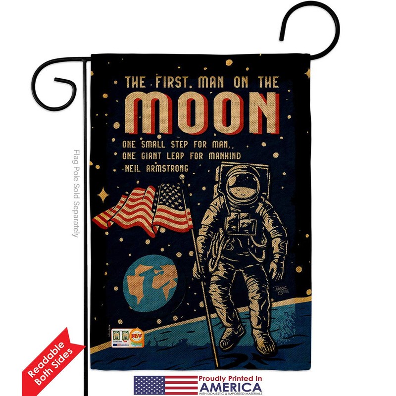 Breeze Decor First Men On Moon Burlap Garden Flag Pack Armed Forces NASA Space Program Discovery Sky Astronomy United State American US Support Our Troops House Yard Gift Double-Sided, Made in USA