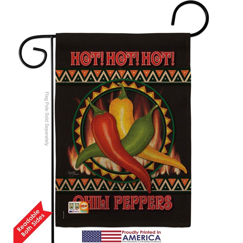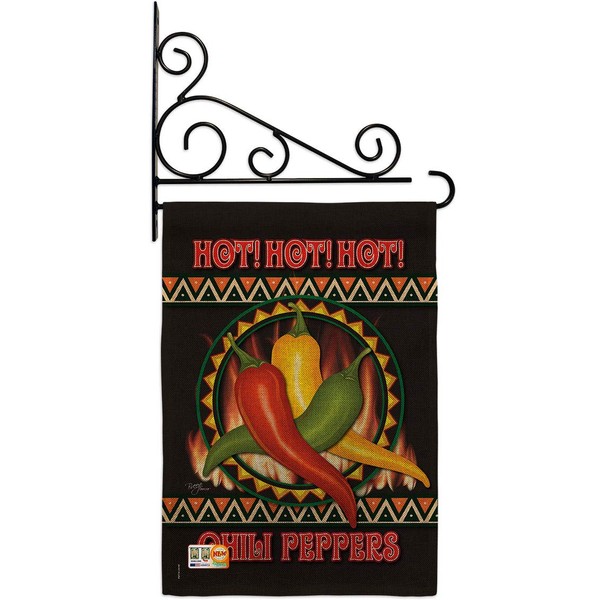 Breeze Decor GS117031-DB-03 Chili Peppers Burlap Food Vegetable Impressions Decorative Vertical 13" x 18.5" Double Sided Garden Flag Set Metal Fansy Wall Bracket Hardware
