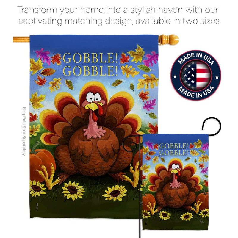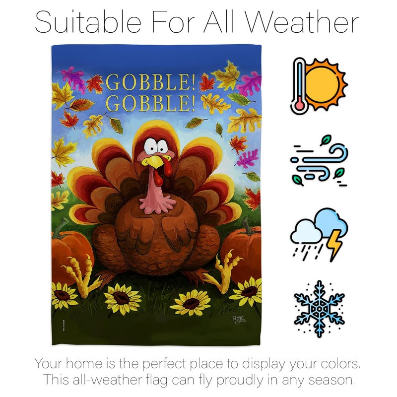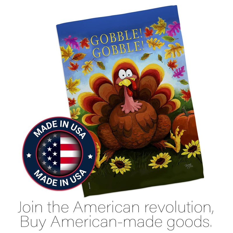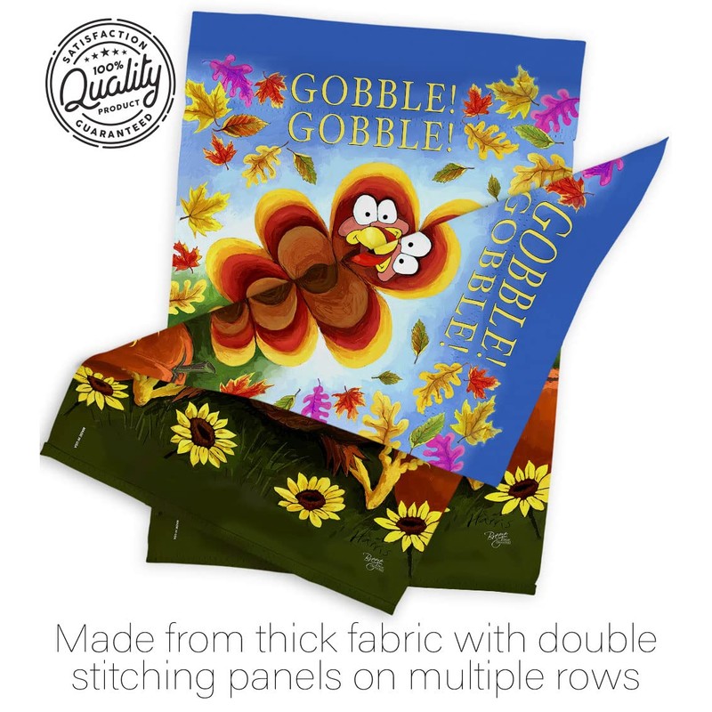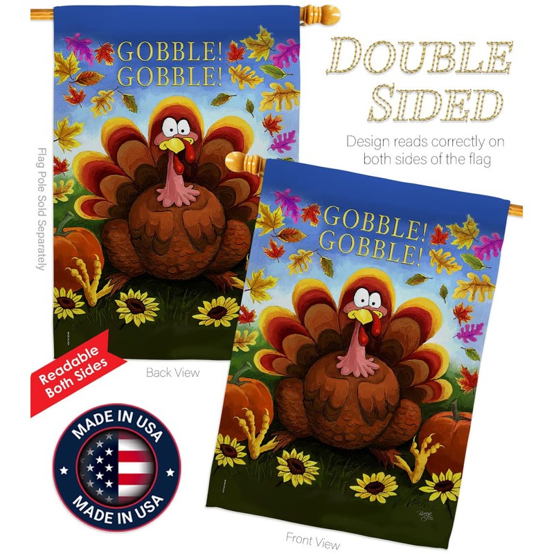 Breeze Decor H113051 Gobble Fall Thanksgiving Decorative Vertical House, Thick Fabric, Large Flag Only