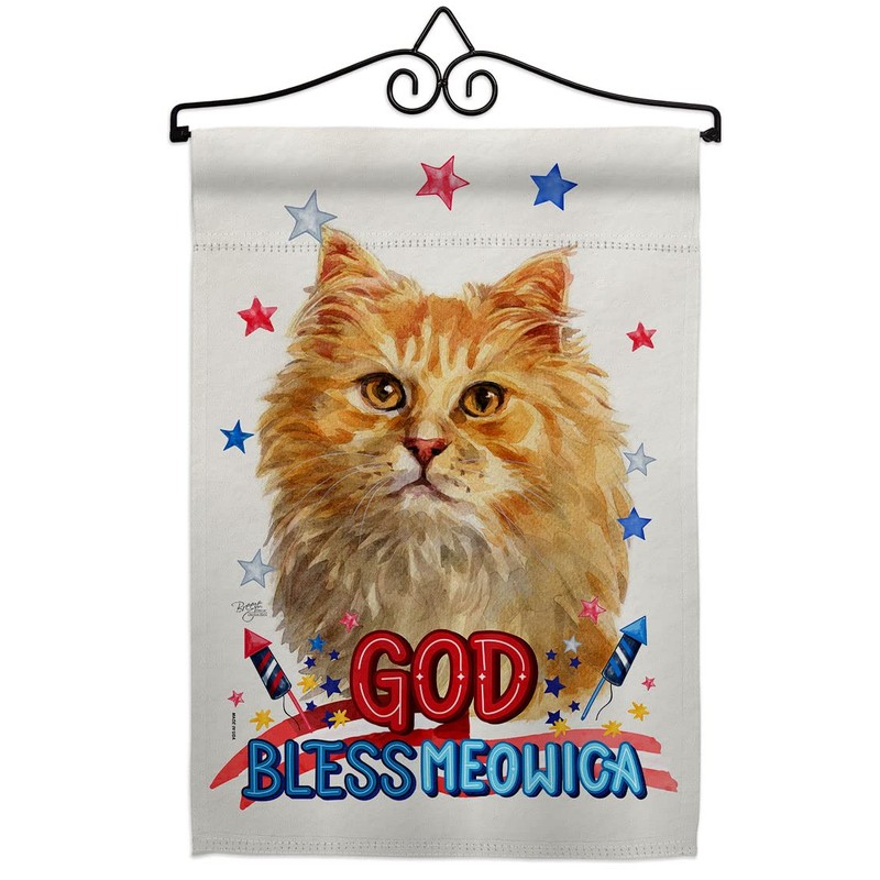 Breeze Decor Patriotic Ginger Long Hair Garden Flag Set Wall Hanger Cat Kitten Meow Spoiled Paw Fur Pet Nature Farm Animal Creature House Banner Small Yard Gift Double-Sided, Made in USA