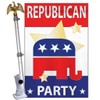 Breeze Decor Two Group HS108025-P2-02 Republican Party Flags of The World Nationality Applique Decorative Vertical 28" x 44" Double Sided House Flag Set Aluminum Pole & Bracket Hardware