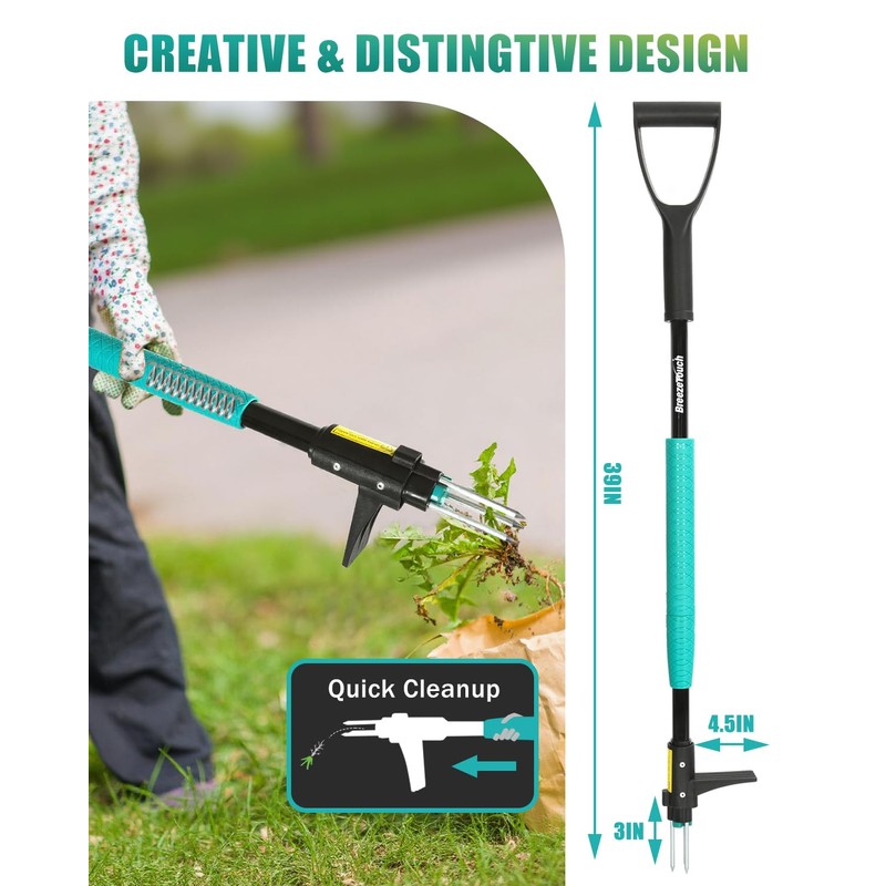 Breeze Touch 39" Weed Pulling Tool, 3-Claw Detachable Weed Puller Tool with Long Handle, Heavy Duty Stand Up Weeder Weeding Tool for Lawn, Yard, Garden, Crabgrass, Dandelion Picker, Weed Remover