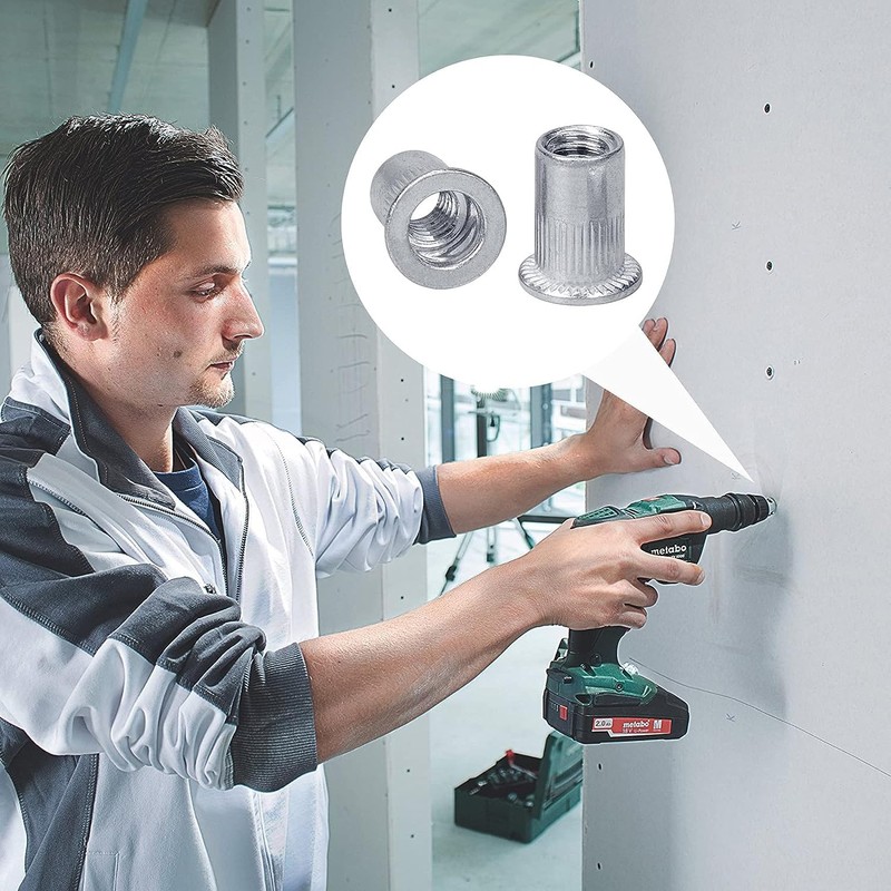 • Excellent Material: Rivet Nuts are made of high quality aluminum, with strong rust resistance and corrosion resistance, and the galvanized surface prevents surface damage and fading, anti-oxidation, health and lead free, high strength, no deformation, beautiful appearance and long use