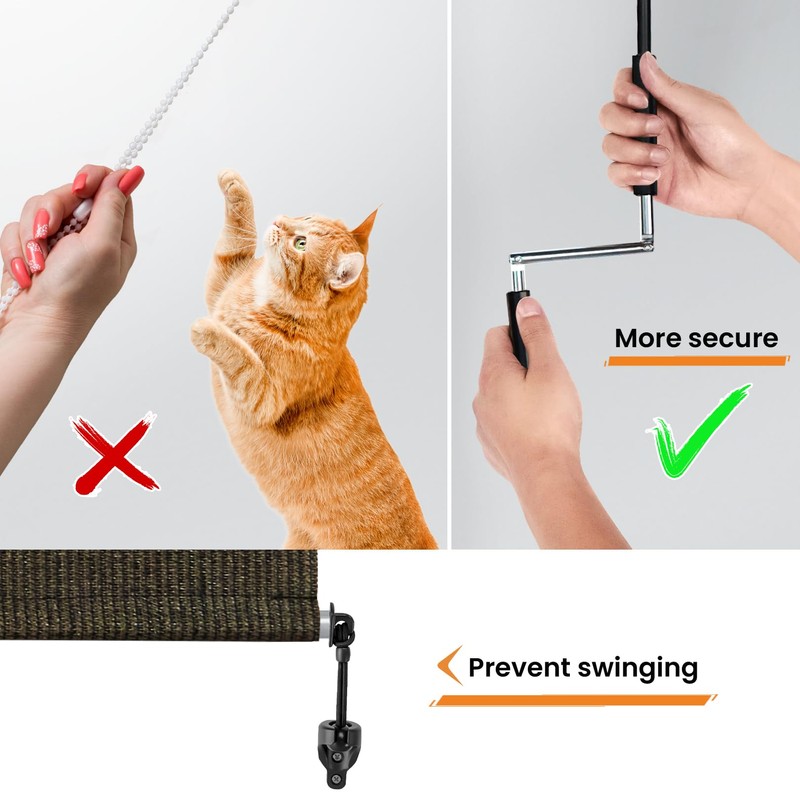 - Child/Pet-Safe & Cordless: Crank wand operation prevents entanglement hazards. Includes bungee cords & brackets to minimize sway (Note:Not for Strong wind areas).