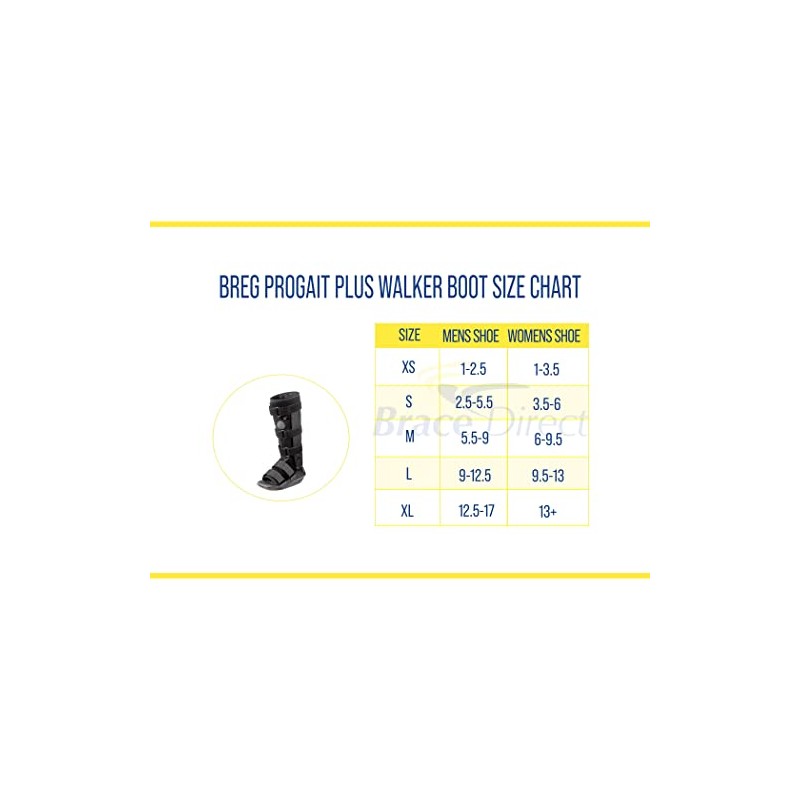 The ProGait Plus walker boot has all of the features and quality you have come to expect from Breg. The pneumatic quick-pump liner enhances patient comfort. The Optional EZ Set Hinge allows for fast and easy range of motion adjustments. The strong and durable aluminum shell provides a thick foam innersole to cushion the foot. Common Examples of Use Ankle sprains and strains Forefoot sprains Stable foot fractures Distal tibial fractures Tags: Walking boot, orthopedic boot, medical boot, foot boot, cam walker boot, foot brace, post op boot, ankle boot, airiest, air cast, broken toe boot, recovery boot, broken foot boot, tall walking boot, surgical boot, stress fracture foot support, short walking boot, medical walking boot, walker boot, broken ankle boot, air boot, fracture foot boot, walking boot for broken foot