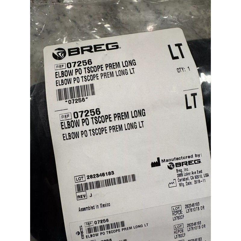 Breg T-Scope Premier Post Op Elbow Brace Long- Left - BLK - 07254.