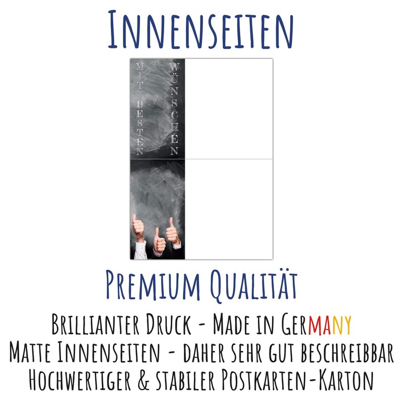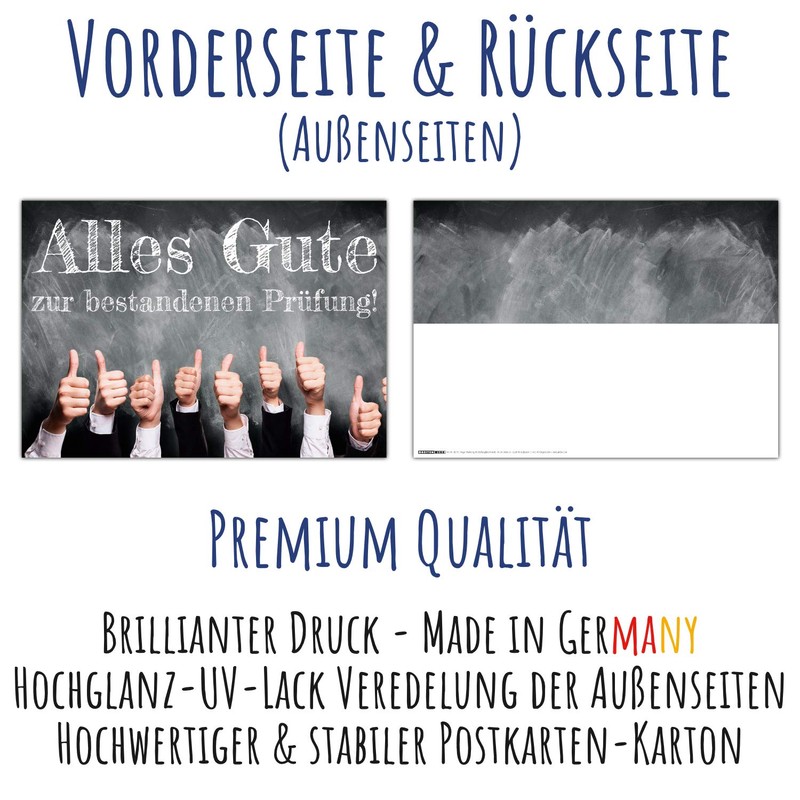 - Brilliant print – the outside of the exam card impresses with its high-gloss UV varnish finish. The inner pages can be written on with all standard pens thanks to the postcard box.