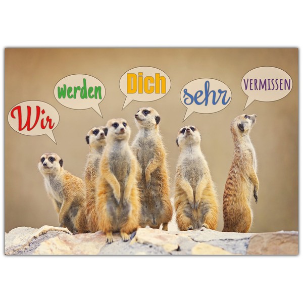 - Funny design: the retirement greeting card with cute meerkats is perfect for the farewell a lovely work colleague, employee or supervisor and as a supplement to leaving gift.