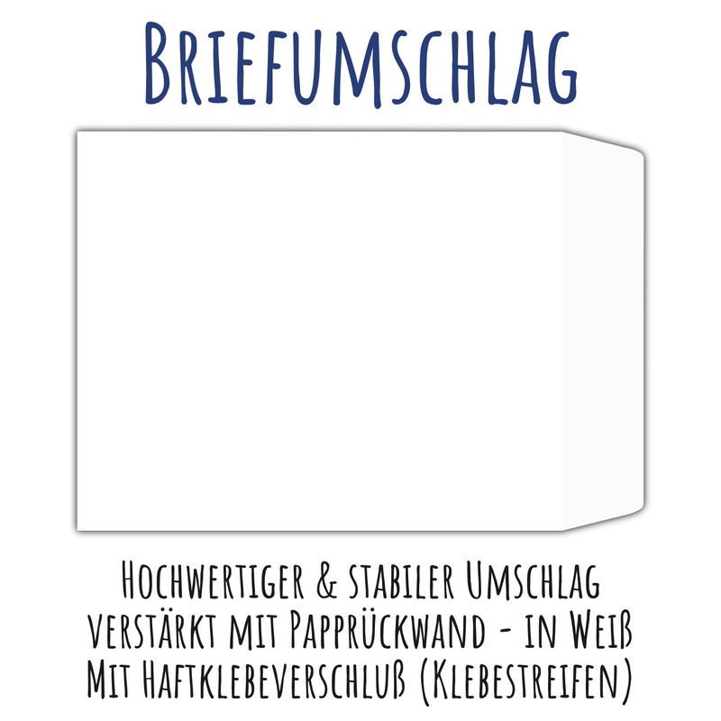 - XXL card set – you will receive an extra large card to open in DIN A4 format (closed: 29.7 x 21 cm – The DIN A3 is unfolded: 29.7 x 42 cm) and an envelope with a cardboard-back in white.