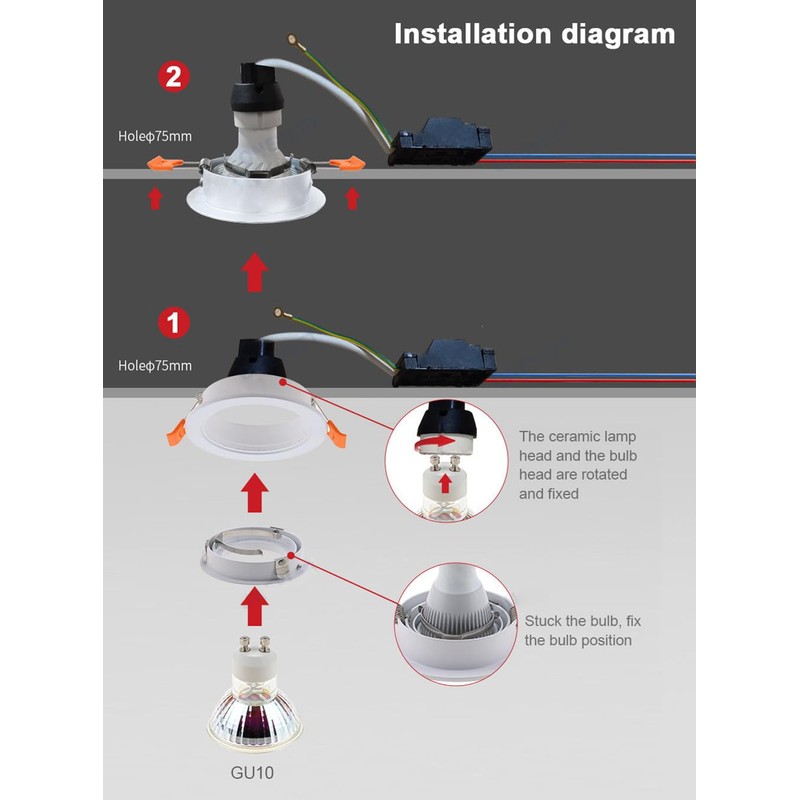 Compact and versatile: 3.6 inches (92 mm) diameter, housing for GU10/GU5.3/MR16/E27 bulb LED spotlight/halogen bulb, suitable for living room, bathroom, hallway, stairwell, bedroom, warehouse, study, showroom