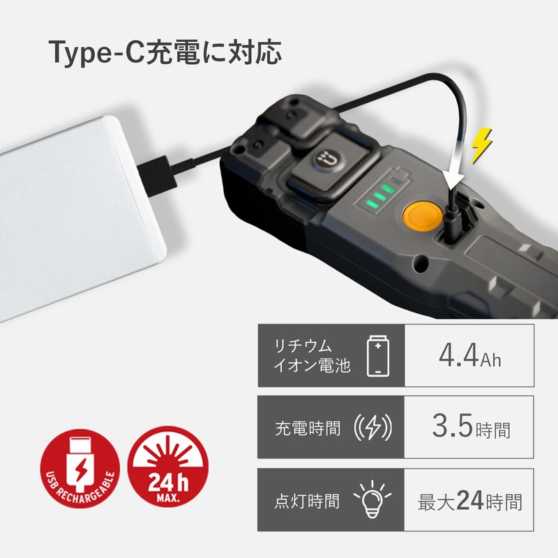 - 1000lm maximum brightness LED work light. Equipped with COB-LED, it can be used continuously for up to 24 hours. Support USB-C charging