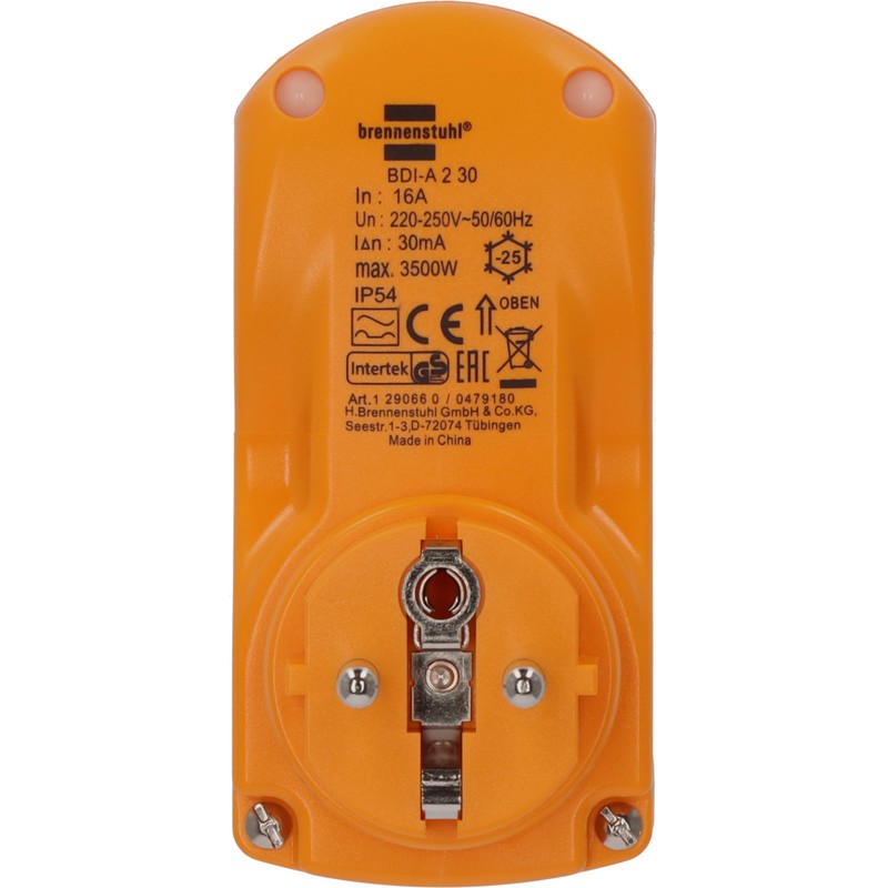 Brennenstuhl personal protection adapter BDI-A 2 30 IP54 / personal protection plug for outside (two-pole disconnection, 30mA)