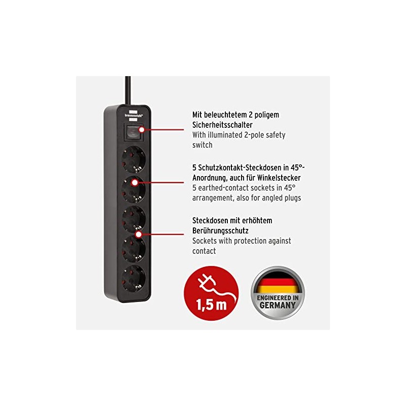 • Box contents: 1 x Ecolor power strip with 1.5 m cable in black – best quality from brennenstuhl