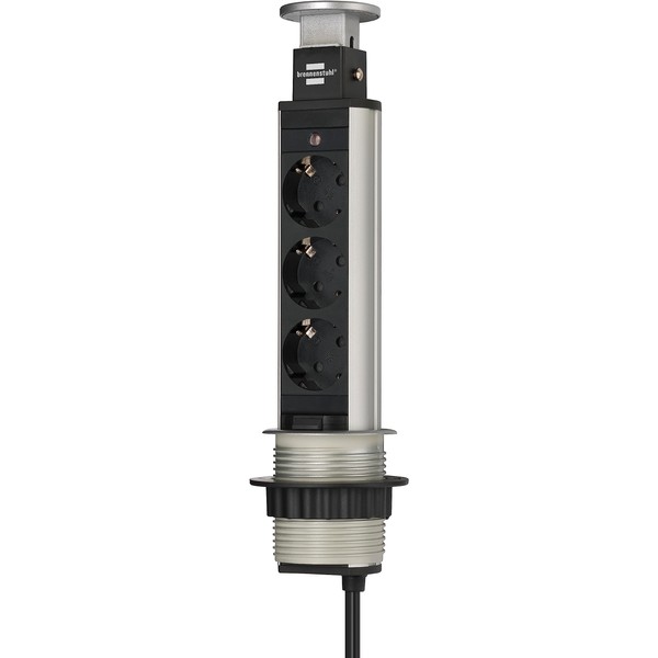 Brennenstuhl Tower Power, Table socket strip 3-way (retractable socket strip, 2m cable, completely retractable in table top) Aluminum / black