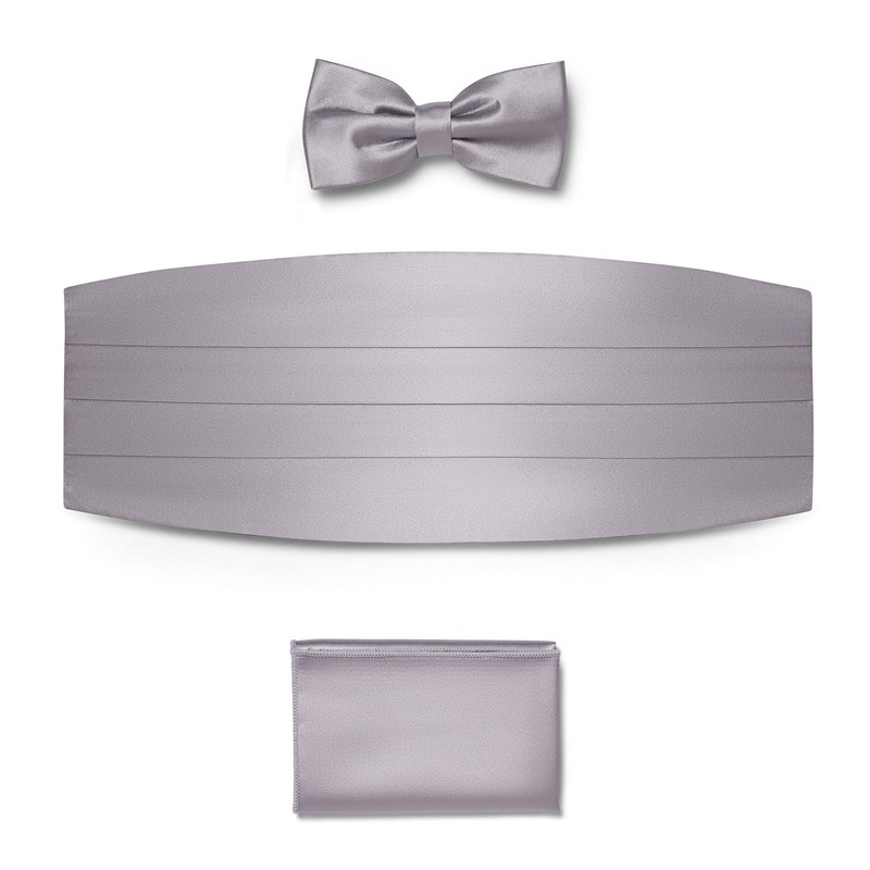 BRERA 67 Set Cummerbund Pocket Square and Bow Tie for Suit Various Sizes and Colours Made of Silk | Bow Tie with Pocket Square Accessories Set for Tuxedo Men | Belt for Evening Dress, gray