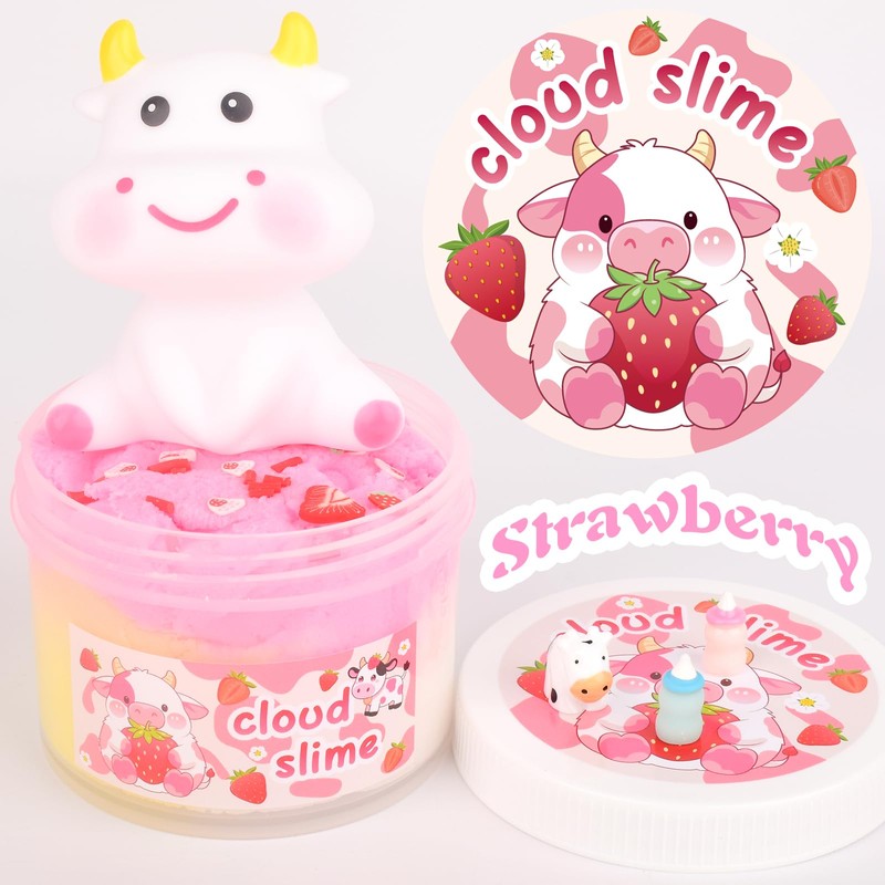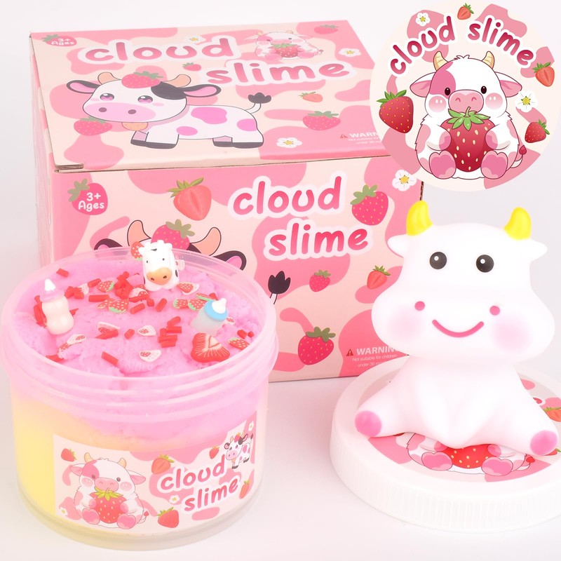 - CUTE STRAWBERRY COW 3-COLOR CLOUD SLIME: 7 oz., soft, stretchy slime, with cute, colorful add ins, boys and girls can enjoy sensual fun Cloud Slime