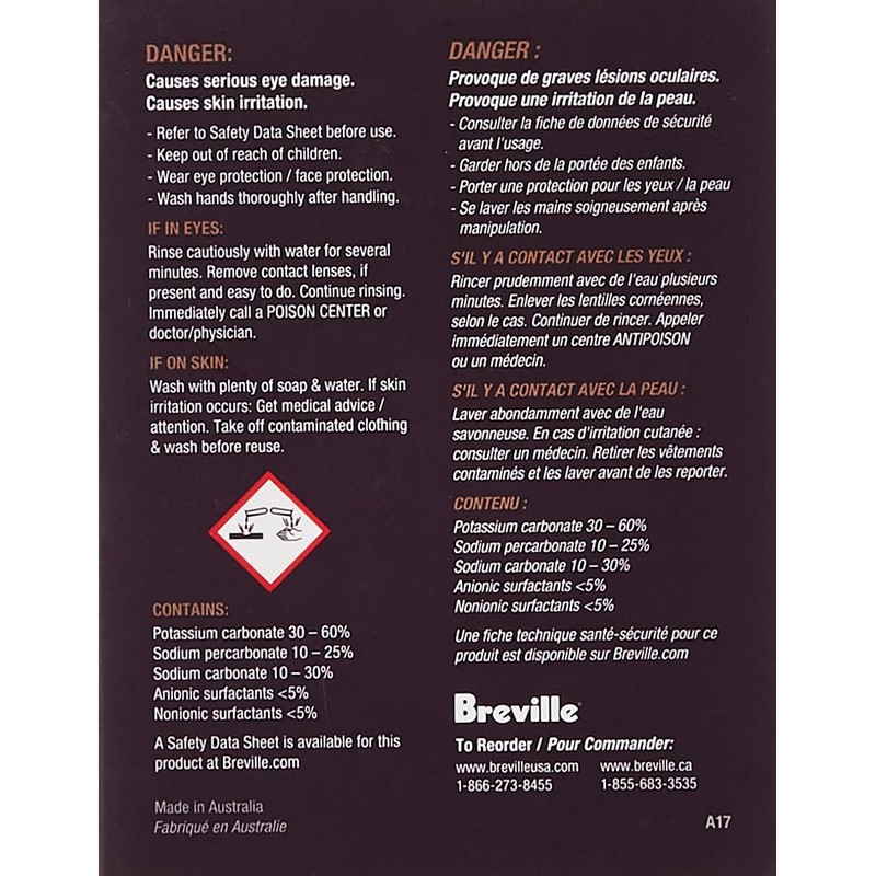 Breville BTM100 Revive Organic Tea Maker Cleaner, Kettle Cleaning Powder, 4 Pack