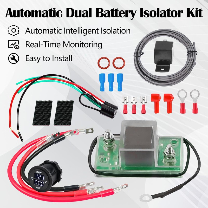 - 【Widely Applicable】The dual battery isolator kit can meet the power needs of the vehicle in various scenarios. For example, during road trips, outdoor camping, off-road adventures and other activities, the power needs of various vehicle electrical appliances can be easily met by the cooperation of the isolator and monitor.