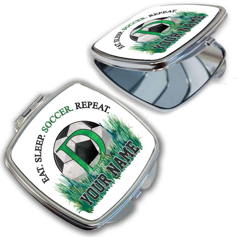 BRGiftShop Personalized Custom Name Eat Sleep Play Soccer Monogram Letter D Compact Pocket Cosmetic Mirror