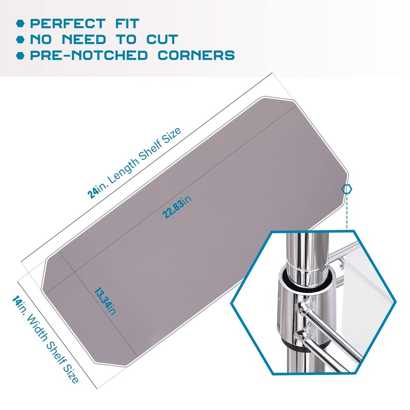 • 【Value Pack】Set of 3 shelf liners (13.34" x 22.83"), fits most brands of 14" x 24" wire shelf. The 4 corners with custom cutouts perfect fit with standard wire shelving system.