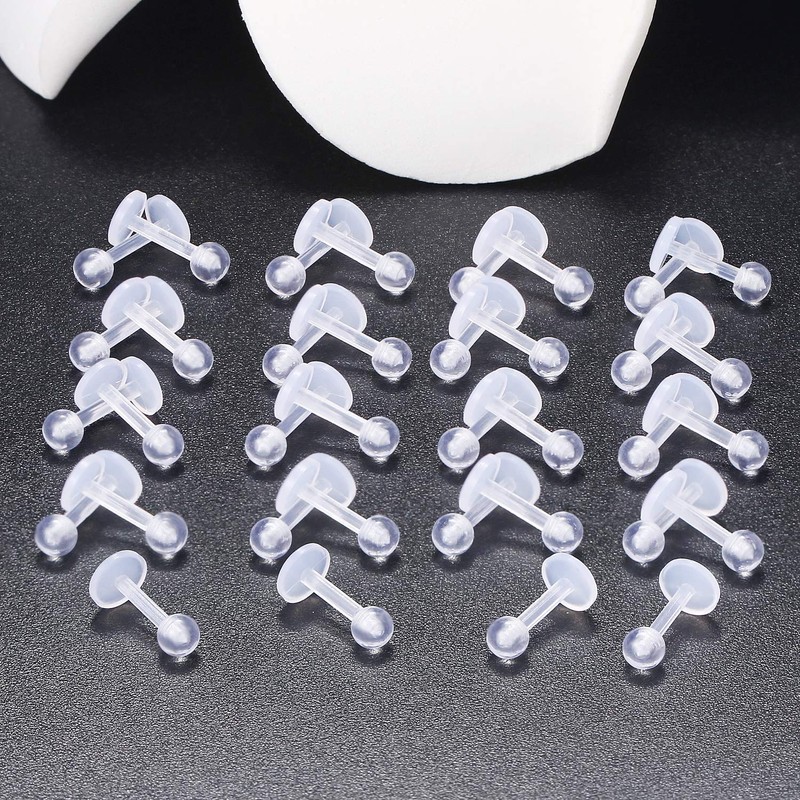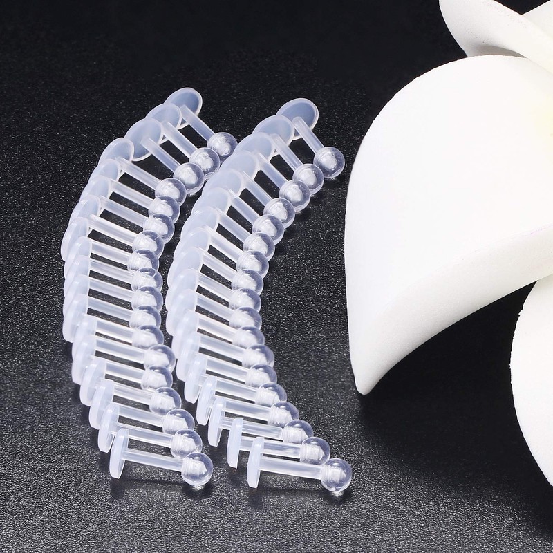 Briana Williams 12-36 Pieces 16G Transparent Lip Piercing Plug Retainer Bioflex Flexible Plastic 6/8/10/12 mm Labret Monroe Piercing, Plastic, stainless steel