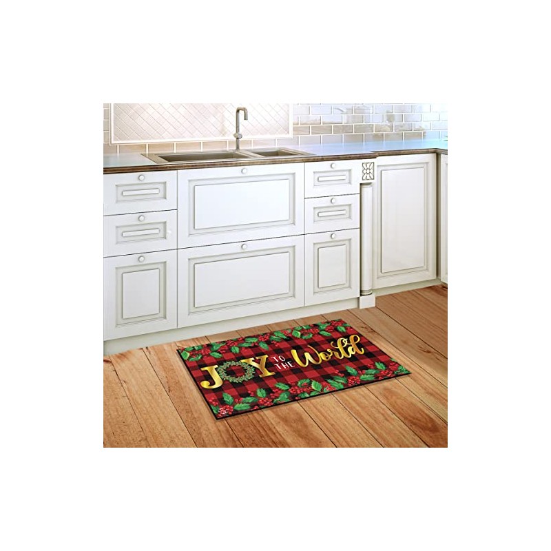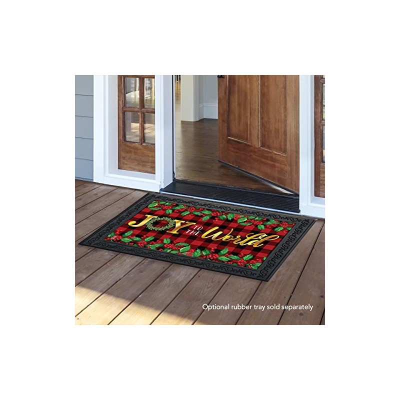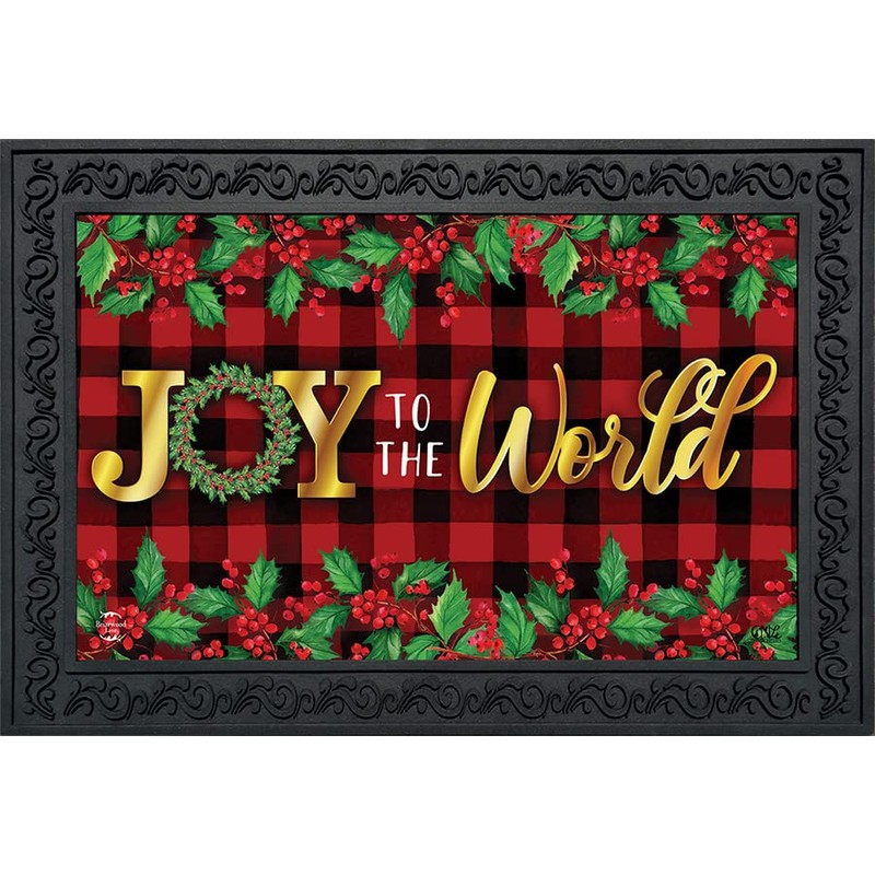 Briarwood Lane Joy to The World Christmas Doormat Checkered Berries 30" x 18"