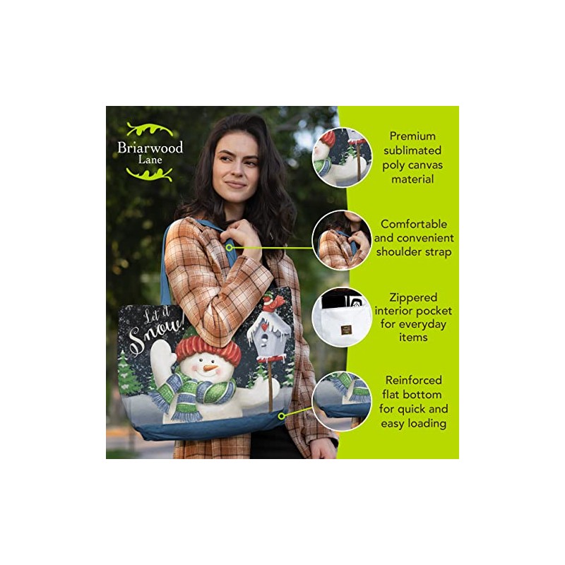 Briarwood Lane Snow Time Snowman Winter Canvas Tote Bag Let It Snow 14.5" x 15"